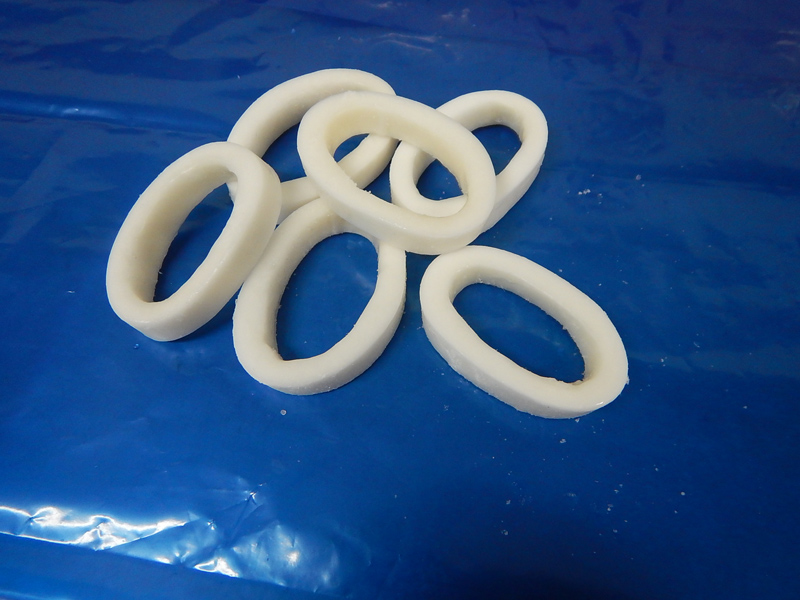 原料我們可以生產(chǎn)加工出魷魚筒,具體規(guī)格可以分為U5 U7 U10(U5的意思是每kg魷魚筒的條數(shù)是5條)、魷魚圈、魷魚花、魷魚條、魷魚串、魷魚頭、魷魚耳、魷魚耳花、魷魚壓花片、二本足等系列產(chǎn)品