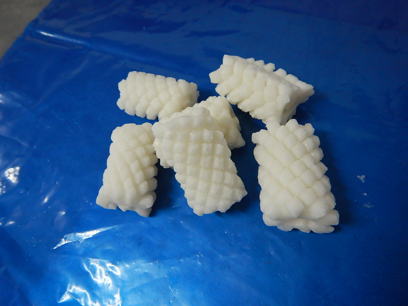 原料我們可以生產加工出魷魚筒,具體規格可以分為U5 U7 U10(U5的意思是每kg魷魚筒的條數是5條)、魷魚圈、魷魚花、魷魚條、魷魚串、魷魚頭、魷魚耳、魷魚耳花、魷魚壓花片、二本足等系列產品