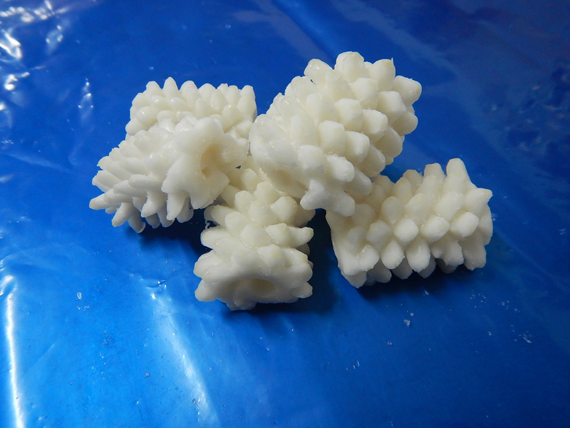 原料我們可以生產加工出魷魚筒,具體規格可以分為U5 U7 U10(U5的意思是每kg魷魚筒的條數是5條)、魷魚圈、魷魚花、魷魚條、魷魚串、魷魚頭、魷魚耳、魷魚耳花、魷魚壓花片、二本足等系列產品