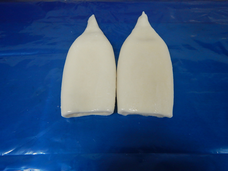 原料我們可以生產加工出魷魚筒,具體規格可以分為U5 U7 U10(U5的意思是每kg魷魚筒的條數是5條)、魷魚圈、魷魚花、魷魚條、魷魚串、魷魚頭、魷魚耳、魷魚耳花、魷魚壓花片、二本足等系列產品